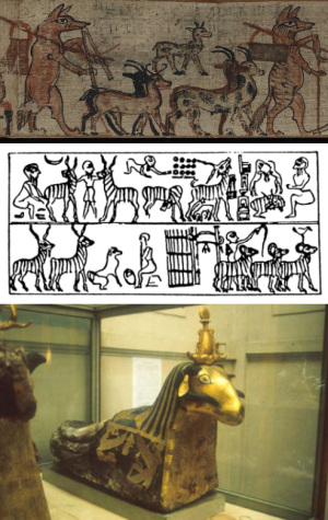 [[Datei:Farbige Tiere.png|mini|Gepunktete und gestreifte Ziegen, schwarzes Schaf. (c) 1: [https://www.britishmuseum.org/collection/object/Y_EA10016-1 BM EA10016,1]; 2: Ryder 1983; 3: [https://ka.wikipedia.org/wiki/%E1%83%A4%E1%83%90%E1%83%98%E1%83%9A%E1%83%98:Animals_ram_mummy.jpg Wikimedia]]]<small> | [[Datei:Farbige Tiere.png|mini|Gepunktete und gestreifte Ziegen, schwarzes Schaf. (c) 1: [https://www.britishmuseum.org/collection/object/Y_EA10016-1 BM EA10016,1]; 2: Ryder 1983; 3: [https://ka.wikipedia.org/wiki/%E1%83%A4%E1%83%90%E1%83%98%E1%83%9A%E1%83%98:Animals_ram_mummy.jpg Wikimedia]]]<small> | ||