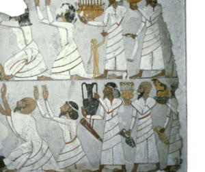 Kanaanäer bringen den Ägyptern unterwürfig Sklaven und Luxusgüter als Tribute dar. Wandgemälde, um 1400. (c) BM, EA37991